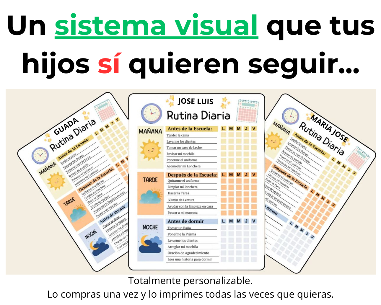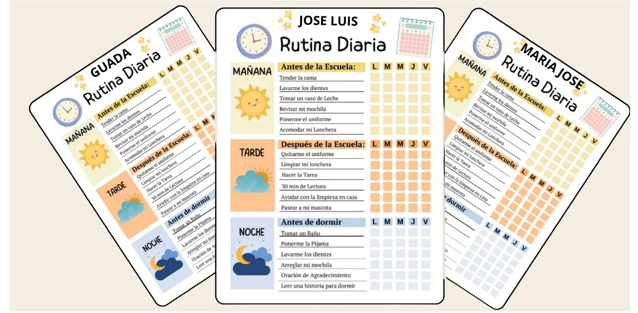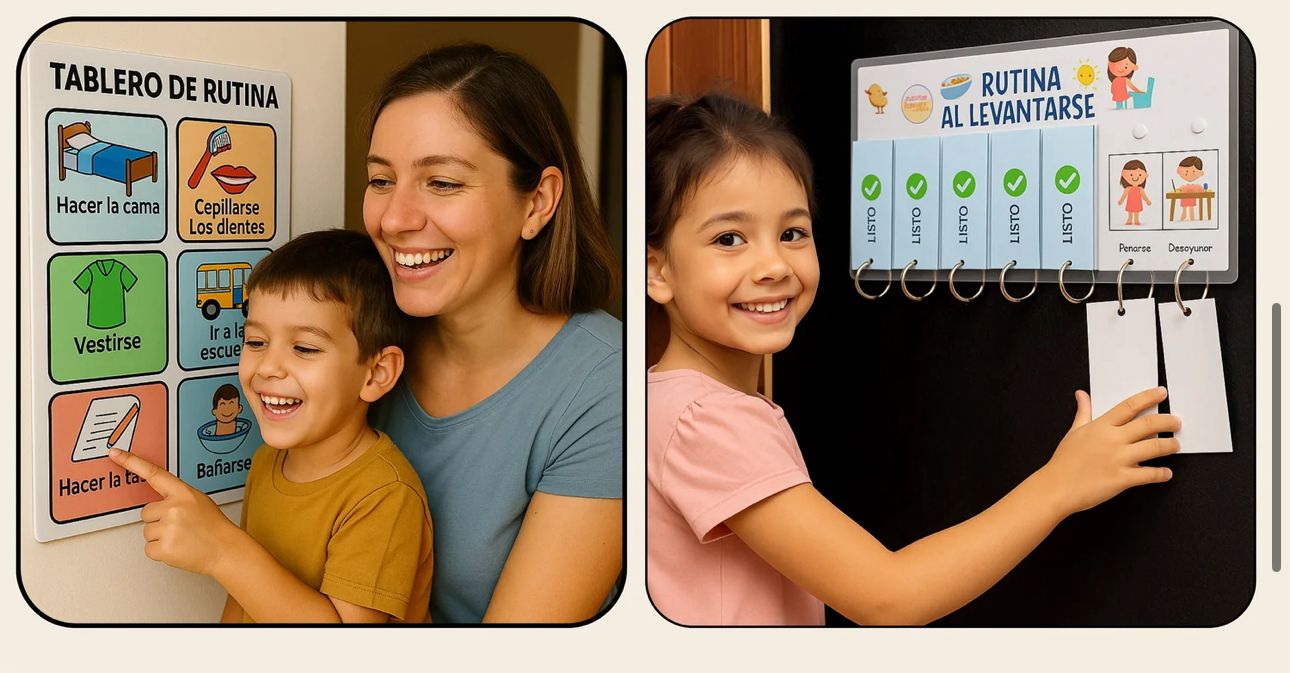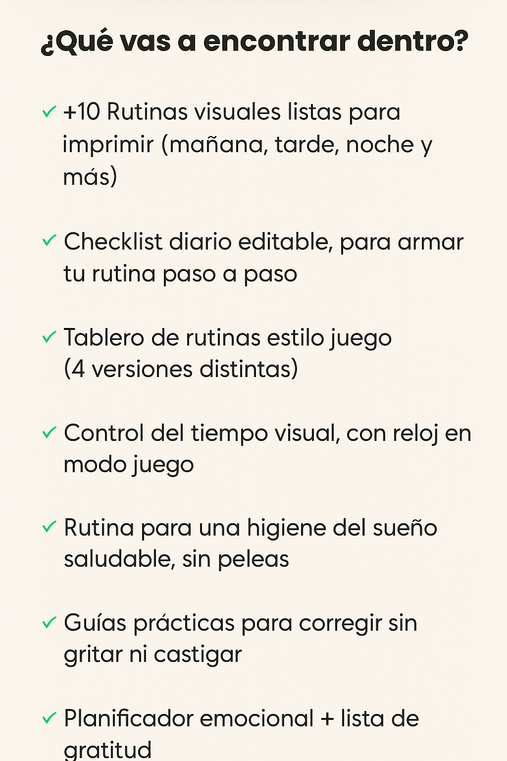 Imprime las guías, pega las rutinas en la nevera o en el cuarto, y empieza a ver cómo tus días fluyen con más orden, más amor y menos berrinches 💛