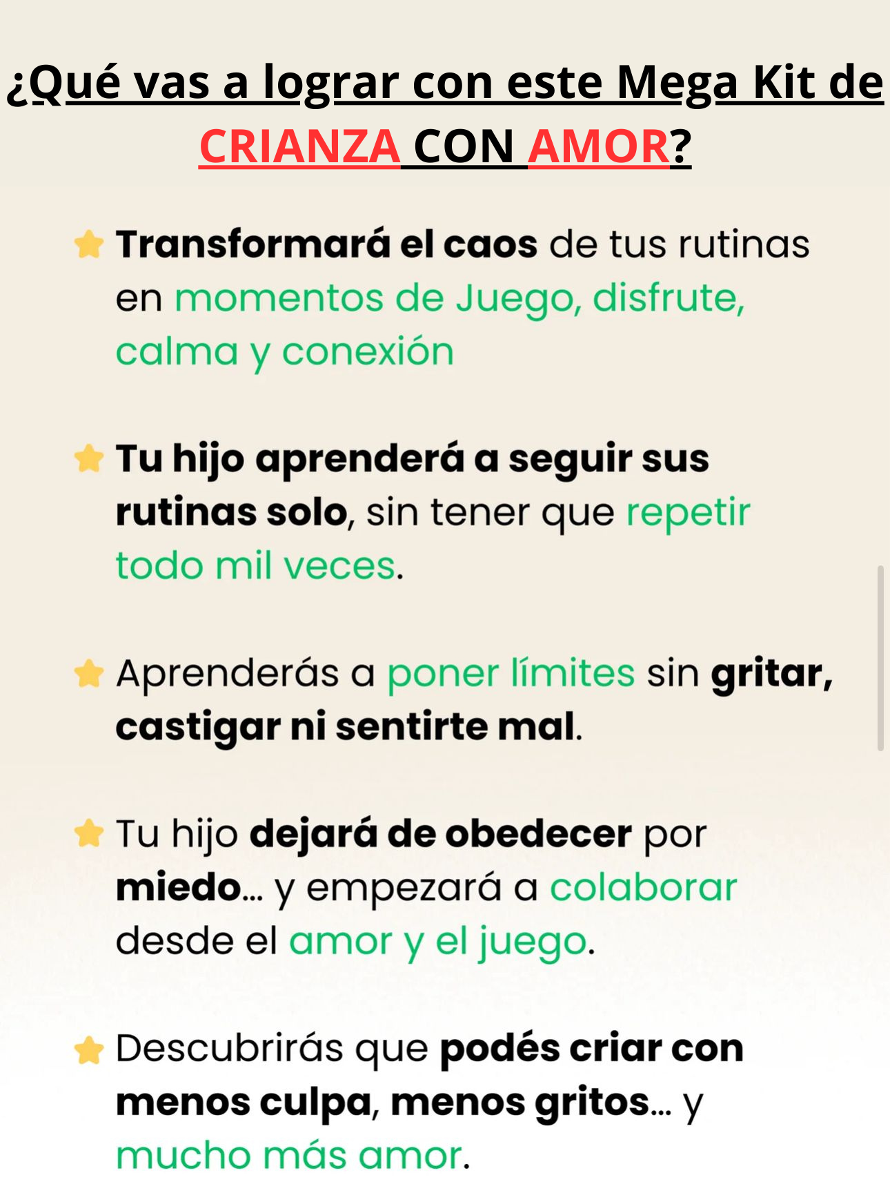 Todo está pensado para ayudarte a criar con amor y estructura, sin gritos ni culpa.
