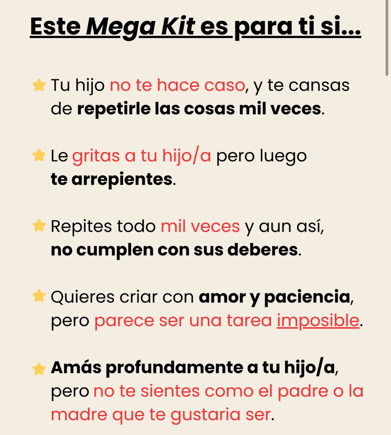Nuestro Mega Kit de Crianza con Amor funciona como una hoja de ruta clara para que tus hijos sepan qué hacer sin que tengas que repetirlo mil veces (ni levantar la voz).