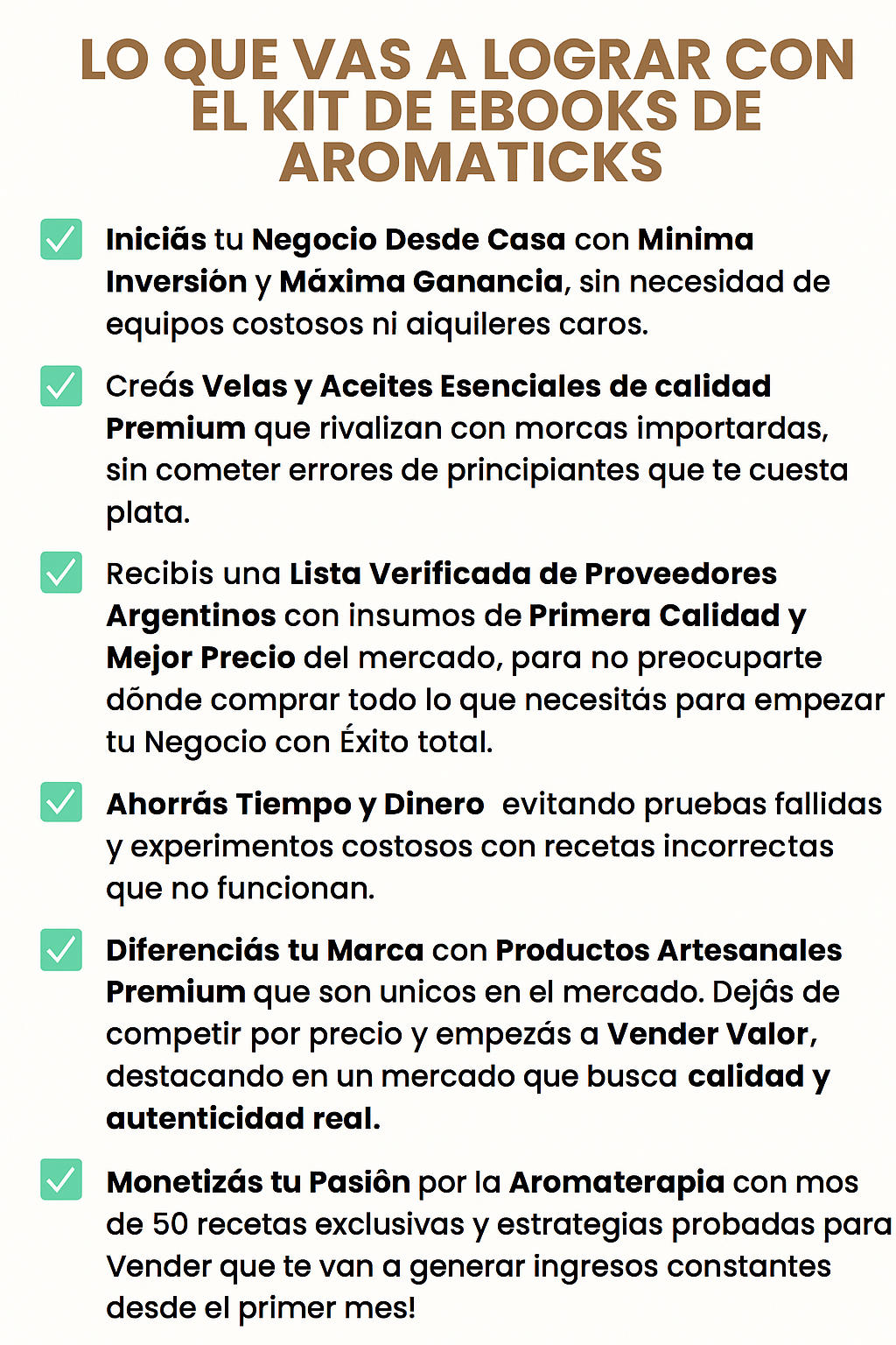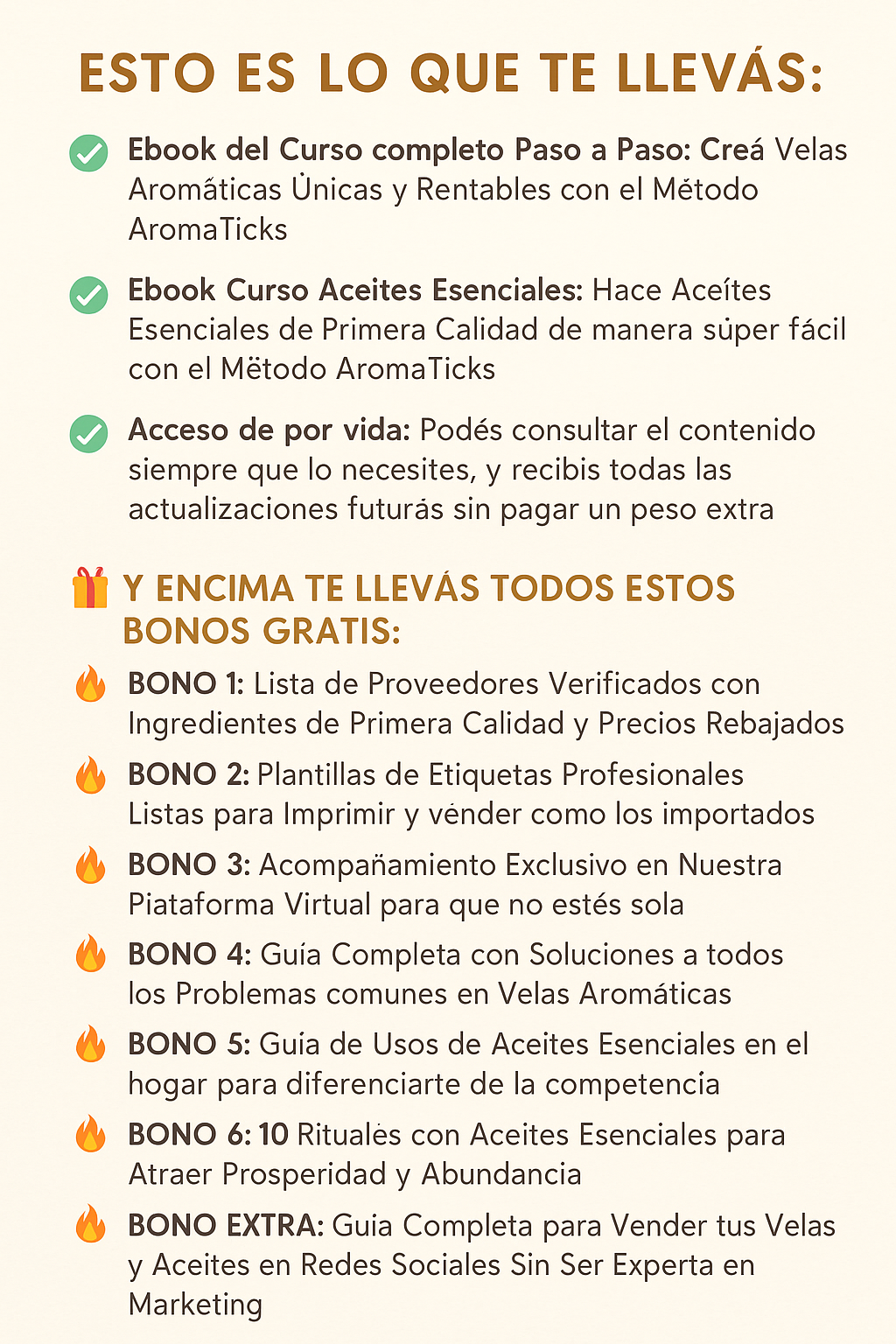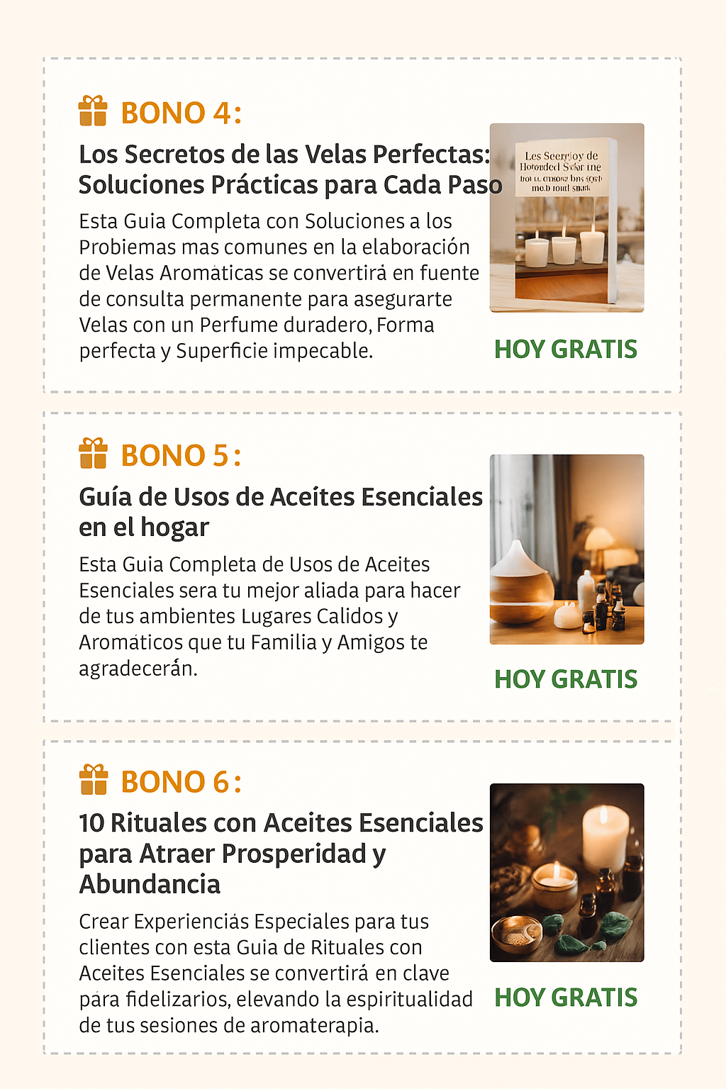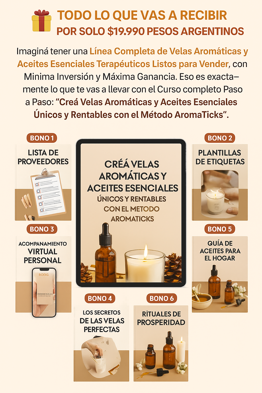 Gracias a los secretos de combinación de aceites, he creado aromas únicos que nadie más tiene. Mis invitadas siempre preguntan dónde las compré, re divertido.