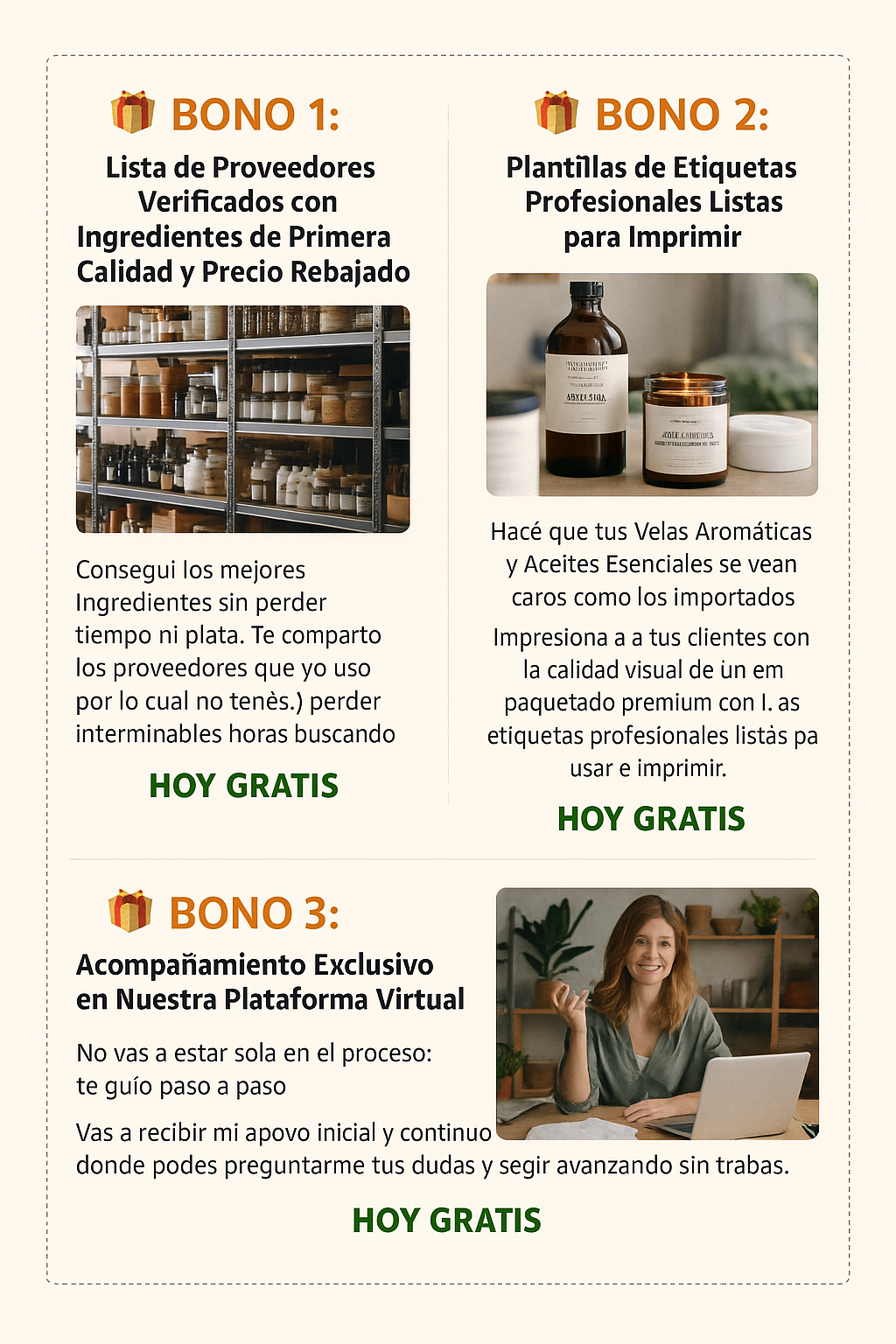 Nunca había hecho una vela en mi vida y con esta guía logré resultados profesionales. Los proveedores recomendados están buenísimos, todo de primera.